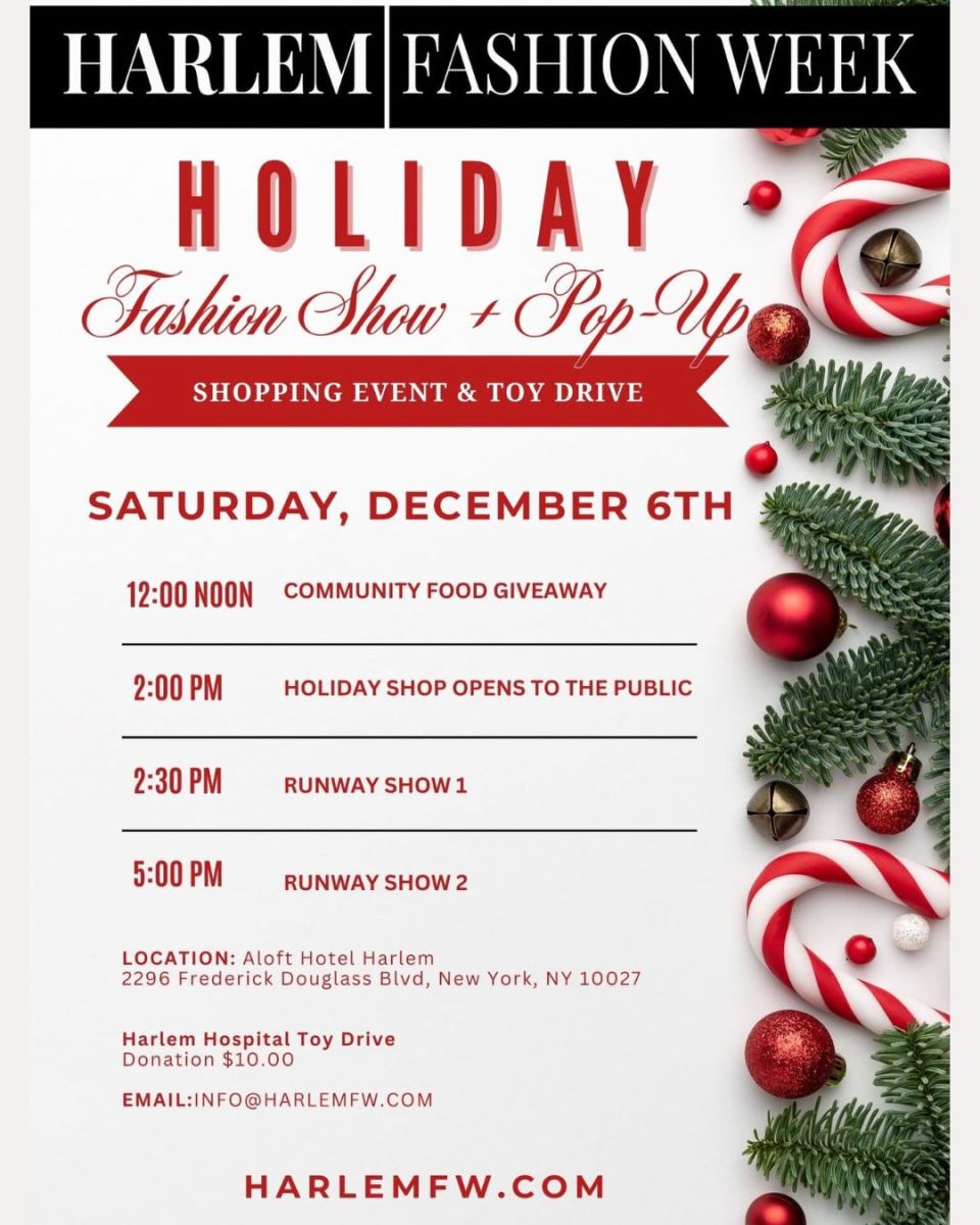 Get ready for a joyful day of fashion, community, and giving! Harlem Fashion Week invites you to its annual Holiday Pop-Up Shopping Event, dedicated to supporting Harlem Hospital’s Toy Drive and spreading holiday cheer across the neighborhood.