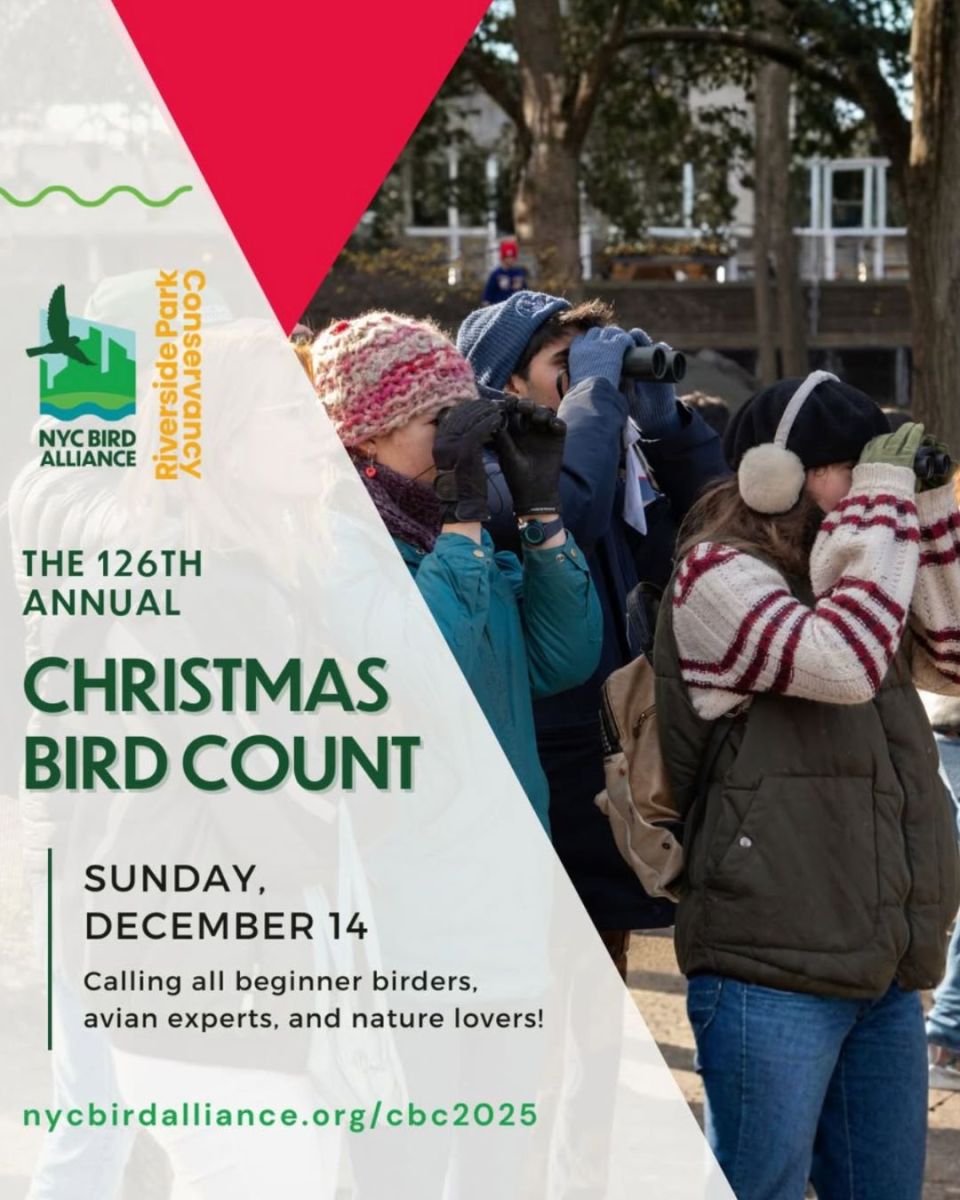 The NYC Bird Alliance and Riverside Park Conservancy invite bird lovers of all levels to take part in the 126th Annual Christmas Bird Count. This long-running community science tradition helps track winter bird populations while connecting people with nature in the heart of New York City.