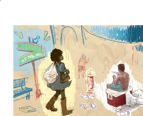 Celebrating 10 years of Faith in the Arts, the museum is proud to present this work by artist Zelinette Estrada who engaged community volunteers in its creation. The mural tells a tale of summer in the city, with a Harlem girl leaving a trail of stories behind, each fallen book weaving its own unique narrative into the fabric of the neighborhood.