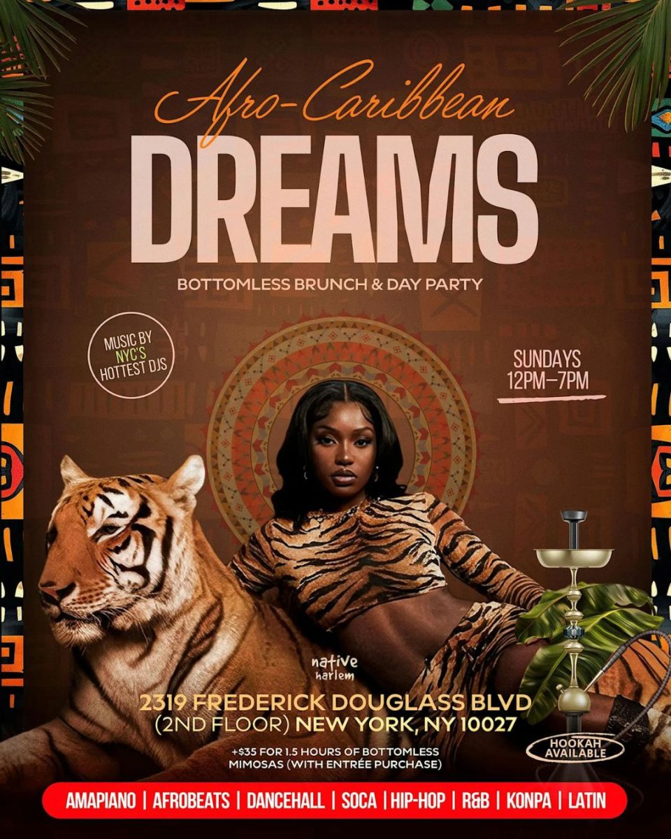Afro‑Caribbean Dreams is a lively brunch day party at Native Harlem, combining Afro-Caribbean flavors, nonstop music, and social vibes.