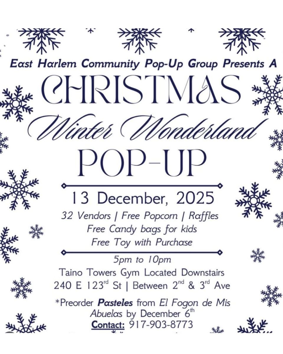 The East Harlem Community Pop-Up Group is bringing together neighbors, families, and friends for a festive evening of shopping, treats, and community cheer.