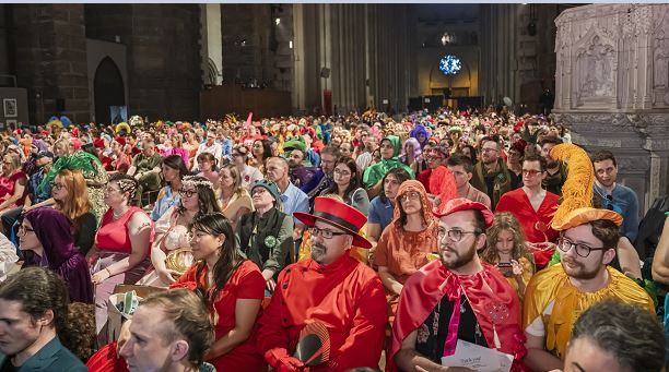 Pride Eve 2026 returns a day early and better than ever with expanded offerings, including an evening of crafts, color, and pageantry. The night will begin with cocktail hour at 6 p.m., inviting visitors to tour the Cathedral, mingle, and visit different craft stations, as well as enter a raffle to win a variety of prizes. Returning for the third year after two consecutive sold-out shows, the Greedy Peasant will then take to the stage for a 45-minute performance culminating in the illumination of the Cathedral in its annual rainbow lights. All are welcome for this special occasion, with monochromatic fanciful dress encouraged. The suggested colors include red, orange, yellow, green, blue, purple, and pink. Tassels also implied. Tickets range from $45 to $100 and all proceeds go to keeping all other Iconic Pride events free for all.