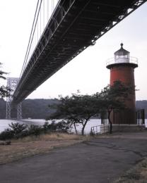 The Jeffrey's Hook lighthouse, erected in 1880 and moved to its current site in 1921, has become widely known as the children's literary landmark, ''The Little Red Lighthouse.'' The story of the lighthouse in Fort Washington Park was popularized by the children's book The Little Red Lighthouse and the Great Gray Bridge, by Hildegarde H. Swift with illustrations by Lynd Ward, published in 1942. In this fictional account of Jeffrey's Hook lighthouse, the structure was presented as a symbol of the significance of a small thing in a big world. The lighthouse became a celebrated ''child's landmark,'' representing importance and permanence, after the proposed removal of the lighthouse in 1951. The public outcry of children and their allies prompted the preservation of the structure through its transfer to the jurisdiction of the City of New York/Parks & Recreation. The Jeffrey's Hook lighthouse, which formerly had stood as the North Hook Beacon at Sandy Hook, New Jersey, from 1880-1917, was reconstructed in 1921 by the United States Bureau of Lighthouses as part of a project to improve the navigational aids on the Hudson River.
