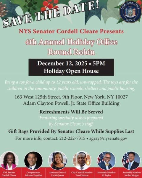 Save the Date! Senator Cordell Cleares 4th Annual Holiday Office Round Robin